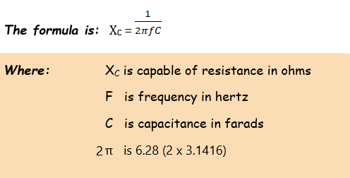XC is capacitive reactance in ohms.
