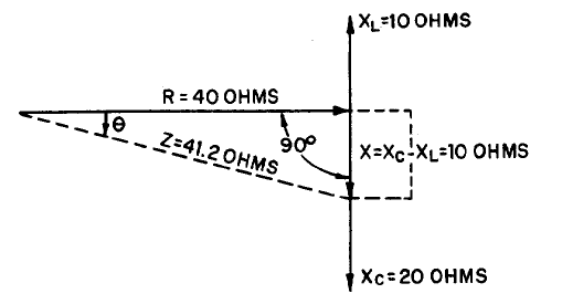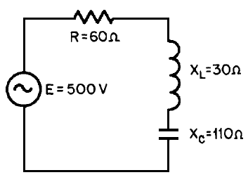 For example, the circuit shown in figure 65 has a total reactance of 80 ohms capacitive, and the power factor was .6 or 60 percent.