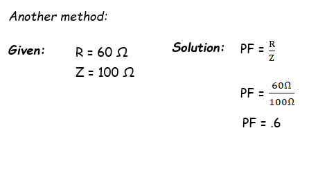 NOTE: As stated earlier, the power factor can be expressed as a decimal or percentage. In this example, the decimal number .6 could also be expressed as 60%.
