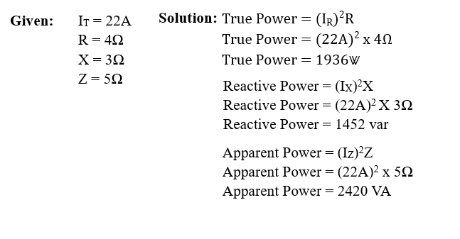 When the voltage is given, you can use the values of currents, I R, IX, and IZ, to calculate for the true power, reactive power, apparent power, and power factor.